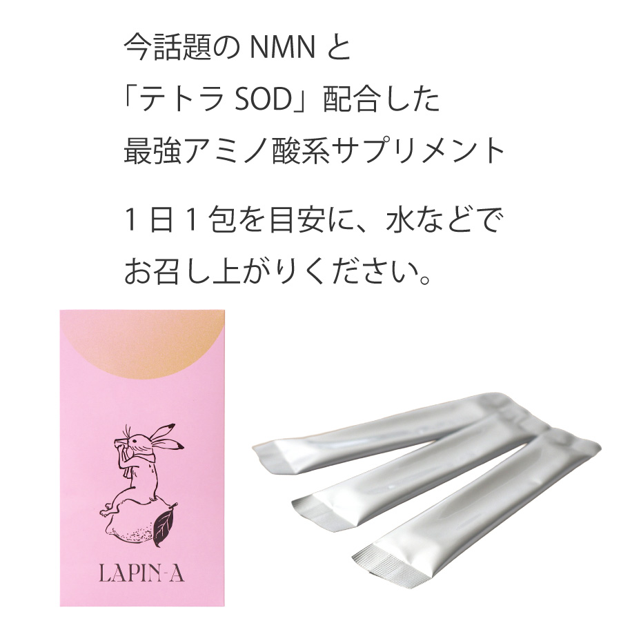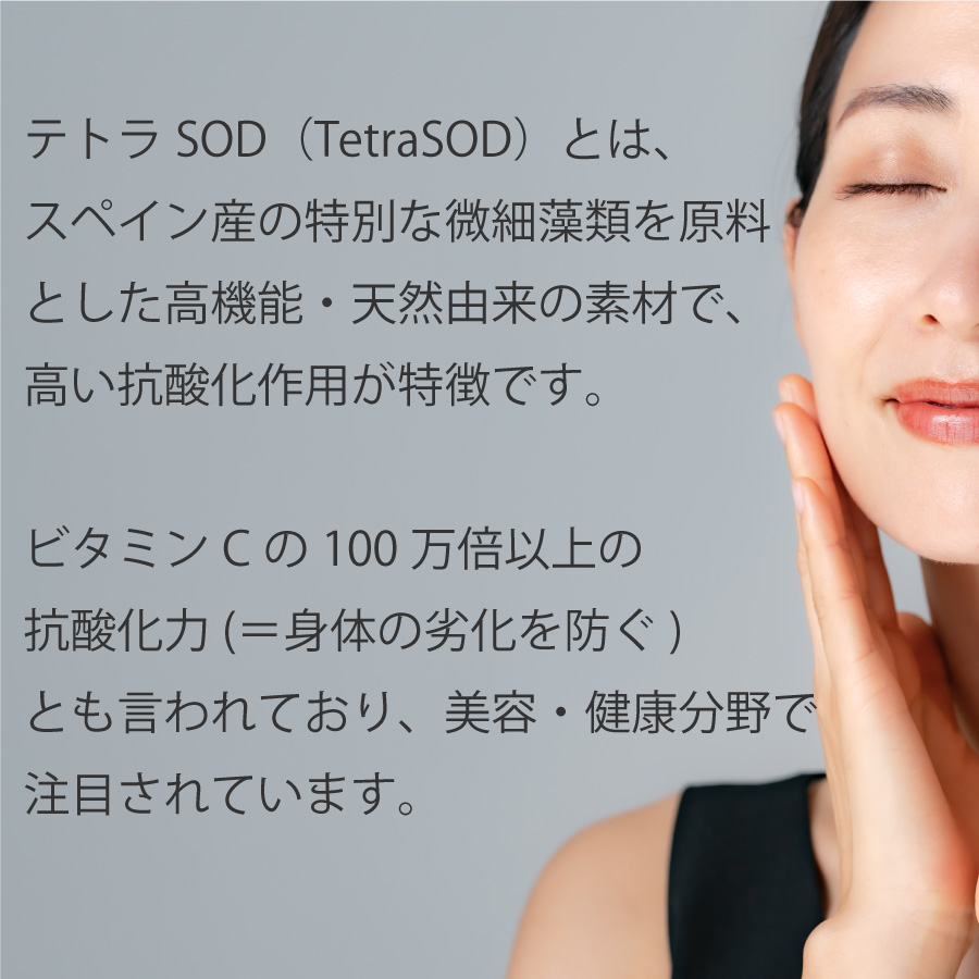 今話題のNMNとビタミンCの100万倍以上の抗酸化力(=身体の劣化を防ぐ)を持つ「テトラSOD」配合した最強アミノ酸系サプリメントです。