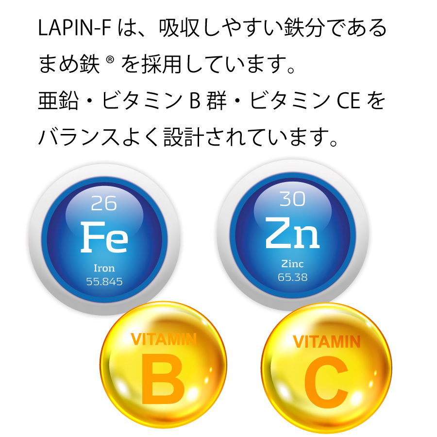LAPIN-F は、吸収しやすい鉄分であるまめ鉄を採用しています。